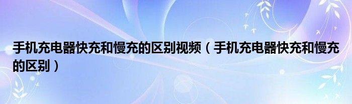 手机充电器快充和慢充的区别视频(手机充电器快充和慢充的区别)