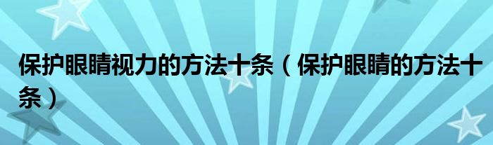 关于保护眼睛视力的方法十条,保护眼睛的方法十条这个很多人还不知道,今天菲菲来为大家解答以上的问题,现在让我们一起来看看吧!