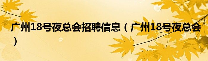 关于广州18号夜总会招聘信息,广州18号夜总会这个很多人还不知道,今天菲菲来为大家解答以上的问题,现在让我们一起来看看吧!