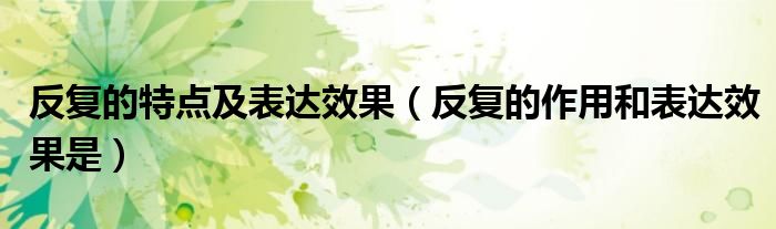 关于反复的特点及表达效果,反复的作用和表达效果是这个很多人还不知道,今天菲菲来为大家解答以上的问题,现在让我们一起来看看吧!