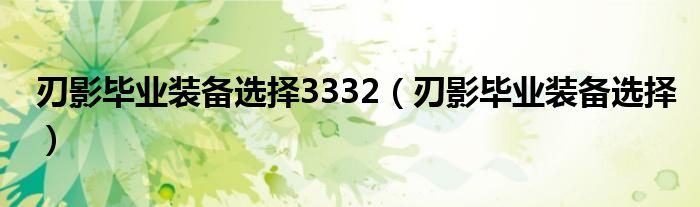 关于刃影毕业装备选择3332,刃影毕业装备选择这个很多人还不知道,今天菲菲来为大家解答以上的问题,现在让我们一起来看看吧!