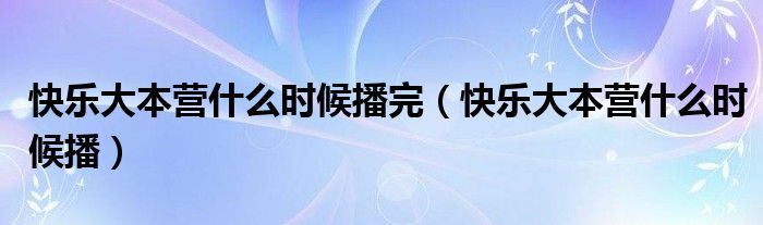 关于快乐大本营什么时候播完,快乐大本营什么时候播这个很多人还不知道,今天菲菲来为大家解答以上的问题,现在让我们一起来看看吧!