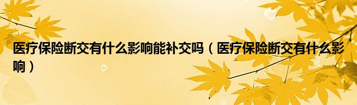 关于医疗保险断交有什么影响能补交吗,医疗保险断交有什么影响这个很多人还不知道,今天菲菲来为大家解答以上的问题,现在让我们一起来看看吧!