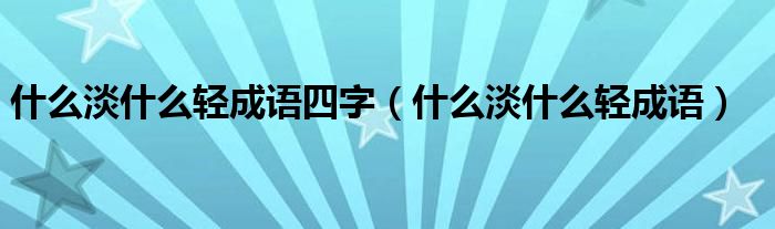 大家好,小晋来为大家解答以下问题,关于什么淡什么轻成语四字,什么淡什么轻成语很多人还不知道,今天让我们一起来看看吧!
