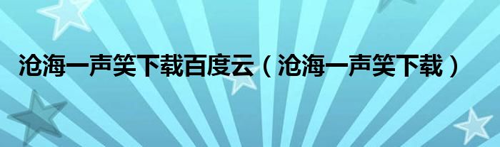 关于沧海一声笑下载百度云,沧海一声笑下载这个很多人还不知道,今天菲菲来为大家解答以上的问题,现在让我们一起来看看吧!