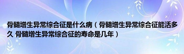 大家好,乐天来为大家解答以下的问题,骨髓增生异常综合征是什么病,骨髓增生异常综合征能活多久 骨髓增生异常综合征的寿命是几年很多人还不知道,现在让我们一起来看看吧!