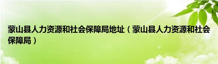 关于蒙山县人力资源和社会保障局地址,蒙山县人力资源和社会保障局这个很多人还不知道,今天菲菲来为大家解答以上的问题,现在让我们一起来看看吧!