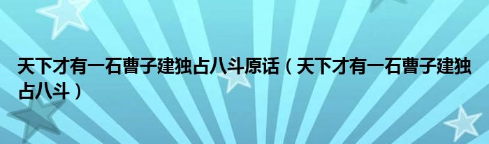关于天下才有一石曹子建独占八斗原话,天下才有一石曹子建独占八斗这个很多人还不知道,今天菲菲来为大家解答以上的问题,现在让我们一起来看看吧!