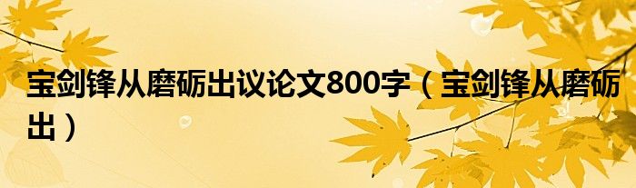 关于宝剑锋从磨砺出议论文800字,宝剑锋从磨砺出这个很多人还不知道,今天菲菲来为大家解答以上的问题,现在让我们一起来看看吧!