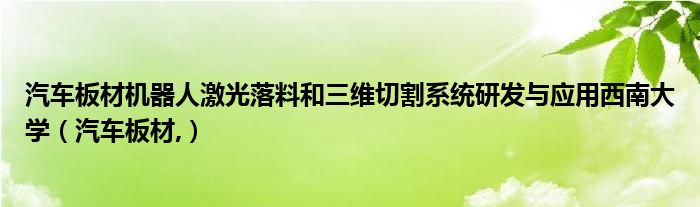 小鱼来为大家解答以下问题,汽车板材机器人激光落料和三维切割系统研发与应用西南大学,汽车板材,很多人还不知道,现在让我们一起来看看吧!