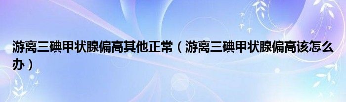 大家好,乐天来为大家解答以下的问题,游离三碘甲状腺偏高其他正常,游离三碘甲状腺偏高该怎么办很多人还不知道,现在让我们一起来看看吧!