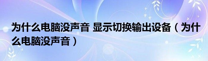 大家好,来宝来为大家解答以下问题,为什么电脑没声音 显示切换输出设备,为什么电脑没声音很多人还不知道,今天让我们一起来看看吧!
