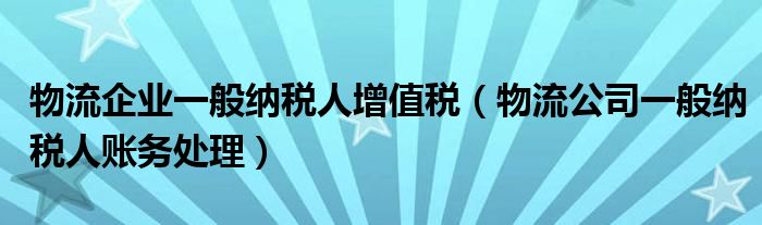 物流企业一般纳税人增值税(物流公司一般纳税人账务处理)