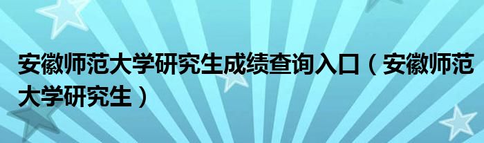 安徽师范大学研究生成绩查询入口(安徽师范大学研究生)