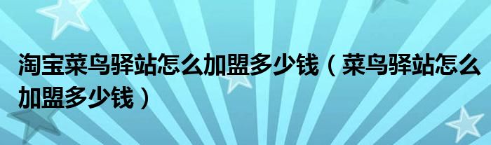 大家好,小小来为大家解答以下问题,淘宝菜鸟驿站怎么加盟多少钱,菜鸟驿站怎么加盟多少钱很多朋友还不知道,现在让我们一起来看看吧!