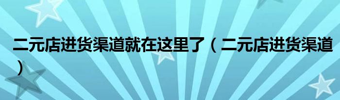 关于二元店进货渠道就在这里了,二元店进货渠道这个很多人还不知道,今天菲菲来为大家解答以上的问题,现在让我们一起来看看吧!