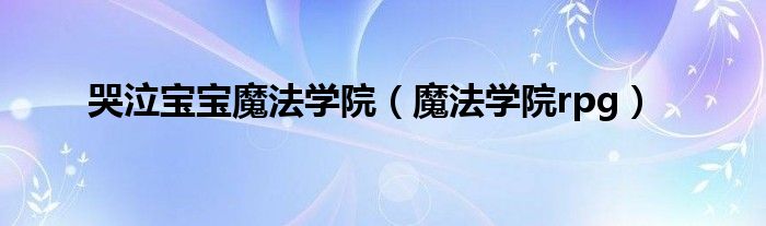 大家好,小小来为大家解答以下问题,哭泣宝宝魔法学院,魔法学院rpg很多朋友还不知道,现在让我们一起来看看吧!