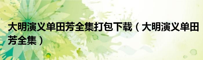 关于大明演义单田芳全集打包下载,大明演义单田芳全集这个很多人还不知道,今天菲菲来为大家解答以上的问题,现在让我们一起来看看吧!