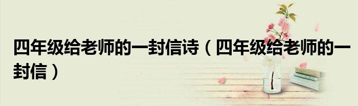 关于四年级给老师的一封信诗,四年级给老师的一封信这个很多人还不知道,今天菲菲来为大家解答以上的问题,现在让我们一起来看看吧!