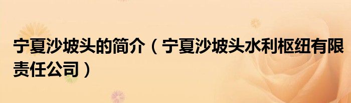 关于宁夏沙坡头的简介,宁夏沙坡头水利枢纽有限责任公司这个很多人还不知道,今天菲菲来为大家解答以上的问题,现在让我们一起来看看吧!