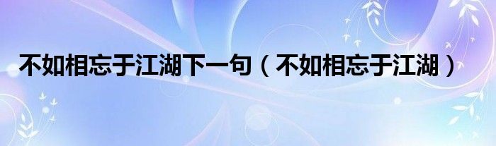 关于不如相忘于江湖下一句,不如相忘于江湖这个很多人还不知道,今天菲菲来为大家解答以上的问题,现在让我们一起来看看吧!