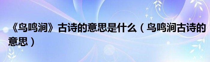 关于《鸟鸣涧》古诗的意思是什么,鸟鸣涧古诗的意思这个很多人还不知道,今天菲菲来为大家解答以上的问题,现在让我们一起来看看吧!