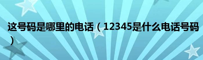 关于这号码是哪里的电话,12345是什么电话号码这个很多人还不知道,今天菲菲来为大家解答以上的问题,现在让我们一起来看看吧!