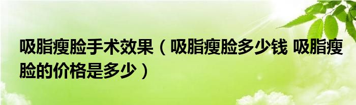 1、 吸脂瘦脸是吸脂手术的一种。