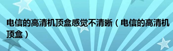 大家好,小小来为大家解答以下问题,电信的高清机顶盒感觉不清晰,电信的高清机顶盒很多朋友还不知道,现在让我们一起来看看吧!