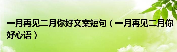 大家好,小小来为大家解答以下问题,一月再见二月你好文案短句,一月再见二月你好心语很多朋友还不知道,现在让我们一起来看看吧!