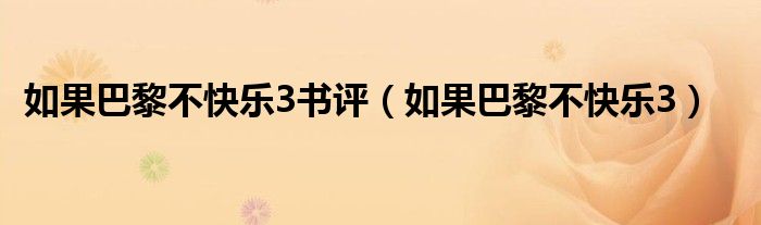 关于如果巴黎不快乐3书评,如果巴黎不快乐3这个很多人还不知道,今天菲菲来为大家解答以上的问题,现在让我们一起来看看吧!