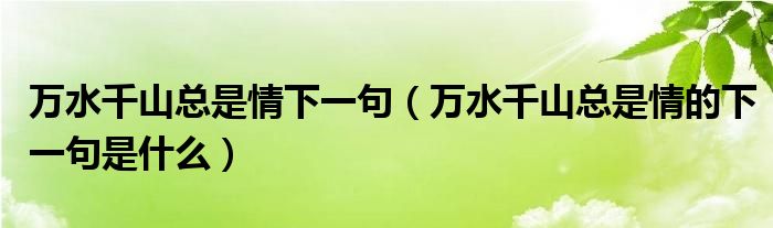 关于万水千山总是情下一句,万水千山总是情的下一句是什么这个很多人还不知道,今天菲菲来为大家解答以上的问题,现在让我们一起来看看吧!