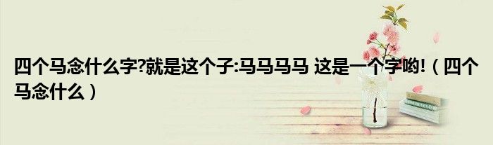 关于四个马念什么字?就是这个子:马马马马 这是一个字哟!,四个马念什么这个很多人还不知道,今天菲菲来为大家解答以上的问题,现在让我们一起来看看吧!