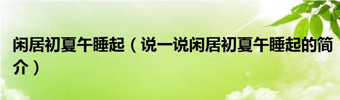 闲居初夏午睡起(说一说闲居初夏午睡起的简介)