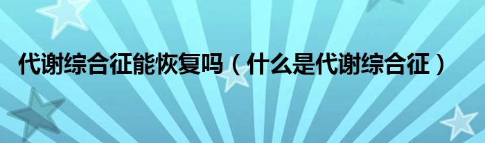 大家好,乐天来为大家解答以下的问题,代谢综合征能恢复吗,什么是代谢综合征很多人还不知道,现在让我们一起来看看吧!