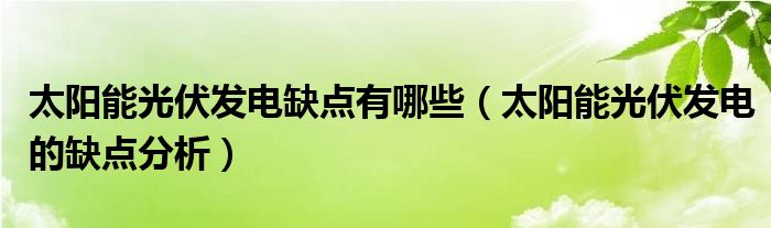 关于太阳能光伏发电缺点有哪些,太阳能光伏发电的缺点分析这个很多人还不知道,今天菲菲来为大家解答以上的问题,现在让我们一起来看看吧!