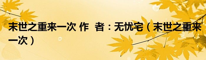关于末世之重来一次 作 者:无忧宅,末世之重来一次这个很多人还不知道,今天菲菲来为大家解答以上的问题,现在让我们一起来看看吧!