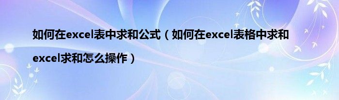 如何在excel表中求和公式(如何在excel表格中求和|excel求和怎么操作)