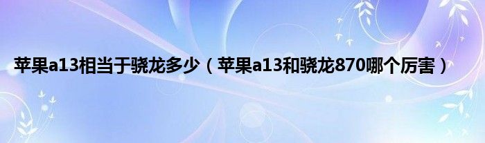 大家好,综合小编来为大家讲解下苹果a13相当于骁龙多少,苹果a13和骁龙870哪个厉害这个很多人还不知道,现在让我们一起来看看吧!
