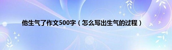 欢迎观看本篇文章,小升来为大家解答以上问题。他生气了作文500字,怎么写出生气的过程很多人还不知道,现在让我们一起来看看吧!