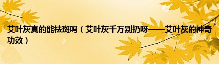 艾叶灰真的能祛斑吗(艾叶灰千万别扔呀——艾叶灰的神奇功效)