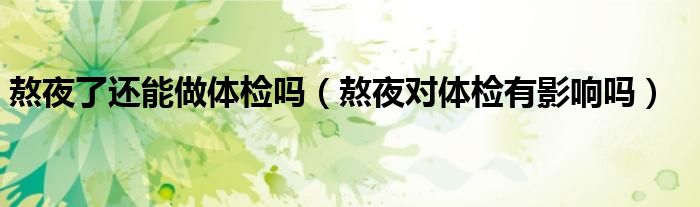 熬夜了还能做体检吗(熬夜对体检有影响吗)
