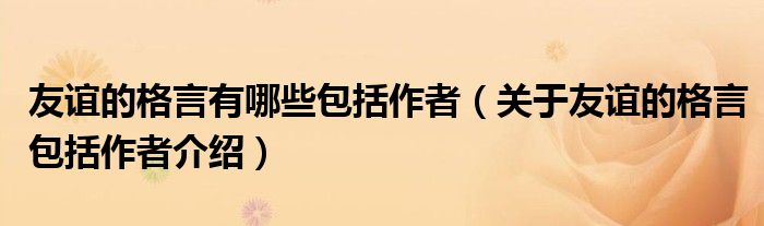 友谊的格言有哪些包括作者(关于友谊的格言包括作者介绍)