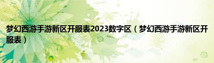 关于梦幻西游手游新区开服表2023数字区,梦幻西游手游新区开服表这个很多人还不知道,今天菲菲来为大家解答以上的问题,现在让我们一起来看看吧!