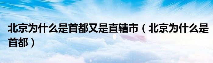 关于北京为什么是首都又是直辖市,北京为什么是首都这个很多人还不知道,今天菲菲来为大家解答以上的问题,现在让我们一起来看看吧!