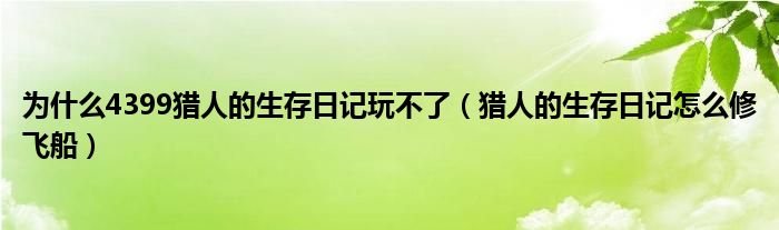 关于为什么4399猎人的生存日记玩不了,猎人的生存日记怎么修飞船这个很多人还不知道,今天菲菲来为大家解答以上的问题,现在让我们一起来看看吧!