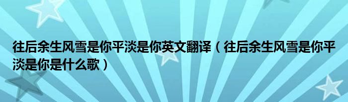 往后余生风雪是你平淡是你英文翻译(往后余生风雪是你平淡是你是什么歌)