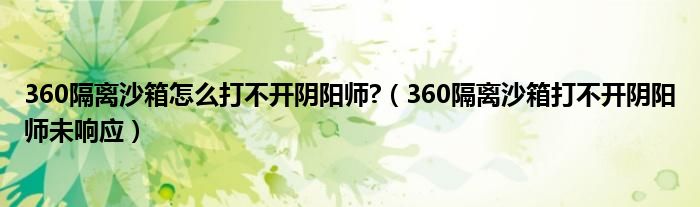 关于360隔离沙箱怎么打不开阴阳师?,360隔离沙箱打不开阴阳师未响应这个很多人还不知道,今天菲菲来为大家解答以上的问题,现在让我们一起来看看吧!