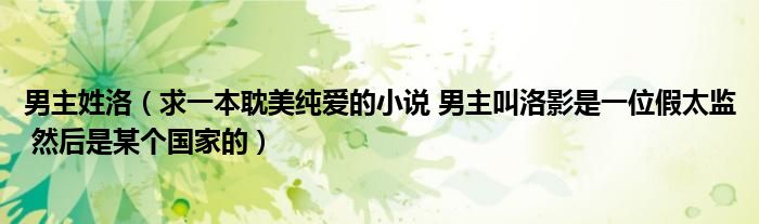 男主姓洛(求一本耽美纯爱的小说 男主叫洛影是一位假太监 然后是某个国家的)