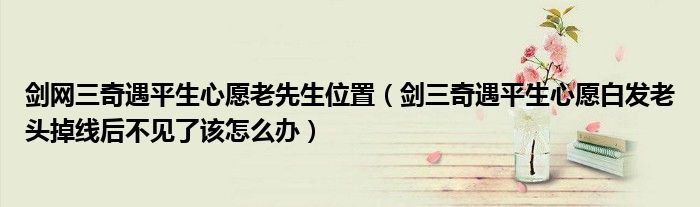 关于剑网三奇遇平生心愿老先生位置,剑三奇遇平生心愿白发老头掉线后不见了该怎么办这个很多人还不知道,今天菲菲来为大家解答以上的问题,现在让我们一起来看看吧!